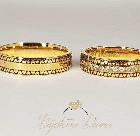 The wedding rings are custom made and can be customized according to your requirements. You have the possibility to choose a combination of colours or you can choose only one colour (Yellow Gold, White Gold or Rose Gold). You also have the possibility to choose the type of gold (14 K Gold or 18 K Gold). If possible, another width can be chosen. And last but not least, you can choose between semiprecious stones and diamonds.