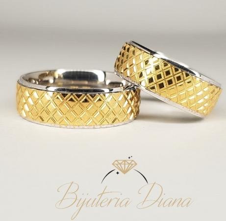 The wedding rings are custom made and can be customized according to your requirements. You have the possibility to choose a combination of colours or you can choose only one colour (Yellow Gold, White Gold or Rose Gold). You also have the possibility to choose the type of gold (14 K Gold or 18 K Gold). If possible, another width can be chosen. And last but not least, you can choose between semiprecious stones and diamonds.