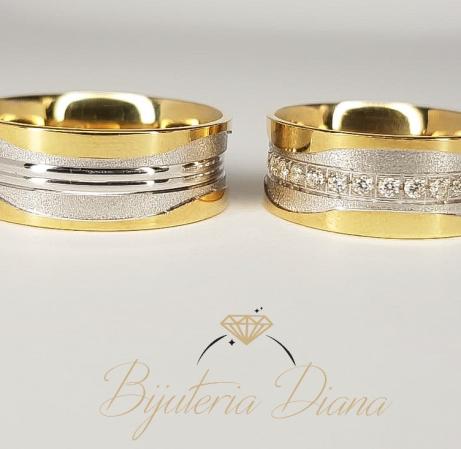 The wedding rings are custom made and can be customized according to your requirements. You have the possibility to choose a combination of colours or you can choose only one colour (Yellow Gold, White Gold or Rose Gold). You also have the possibility to choose the type of gold (14 K Gold or 18 K Gold). If possible, another width can be chosen. And last but not least, you can choose between semiprecious stones and diamonds.
