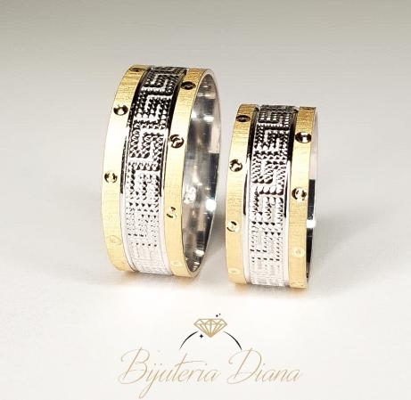 The wedding rings are custom made and can be customized according to your requirements. You have the possibility to choose a combination of colours or you can choose only one colour (Yellow Gold, White Gold or Rose Gold). You also have the possibility to choose the type of gold (14 K Gold or 18 K Gold). If possible, another width can be chosen. And last but not least, you can choose between semiprecious stones and diamonds.