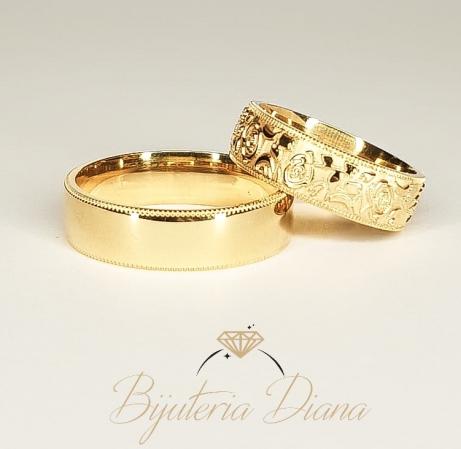 The wedding rings are custom made and can be customized according to your requirements. You have the possibility to choose a combination of colours or you can choose only one colour (Yellow Gold, White Gold or Rose Gold). You also have the possibility to choose the type of gold (14 K Gold or 18 K Gold). If possible, another width can be chosen. And last but not least, you can choose between semiprecious stones and diamonds.